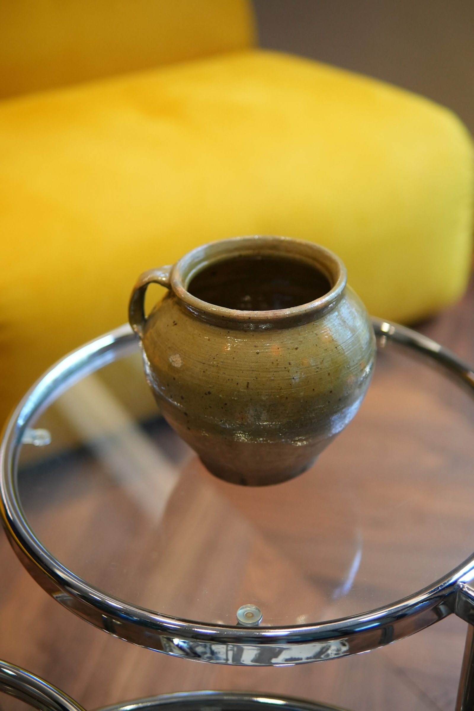 Autentiška tarpukario puodynė su viena ąsele, rasta Zarasų r. Aukštis – 14 cm.